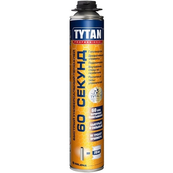 TYTAN 60 Секунд представляет собой многоцелевой клей с высокой адгезией ко многим материалам и основаниям. Уникальная формула на основе TYTACK технологии дает быстрое начальное схватывание после 60 секунд без расширения, что обеспечивает стабильность склеиваемых элементов и предотвращает их деформацию.