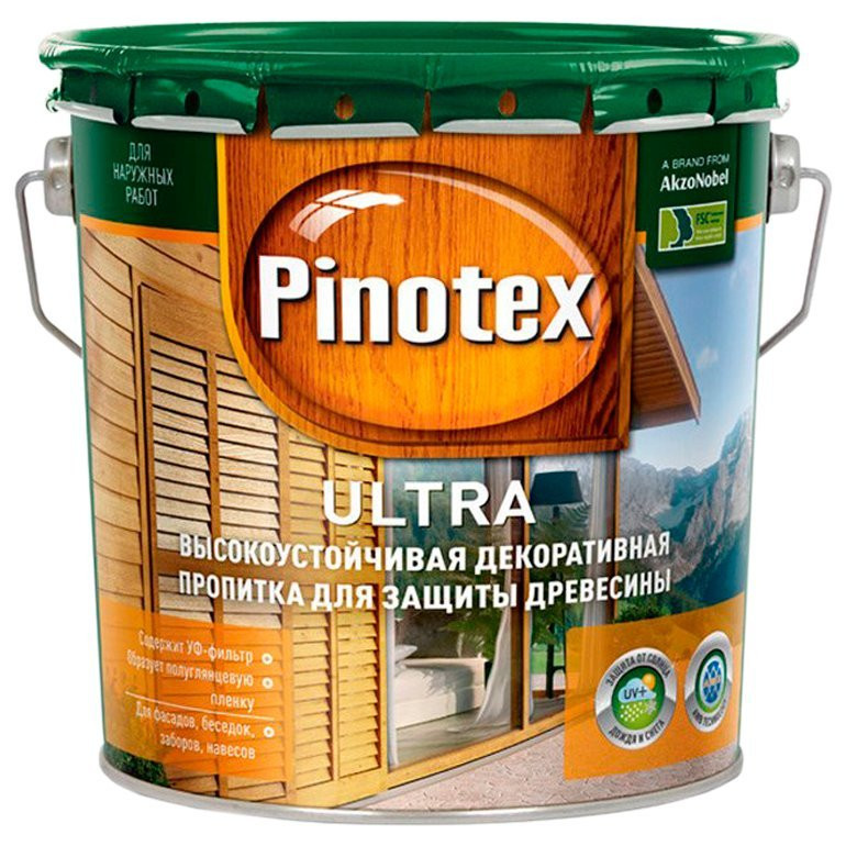 Пинотекс Ультра 2,7л бесцветный Влагостойкая лазурь с воском для защиты древесины / Pinotex Ultra /