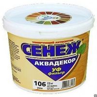 Антисептик СЕНЕЖ АКВАДЕКОР предназначен для долговременной защиты древесины от атмосферных осадков, плесневых, деревоокрашивающих и дереворазрушающих грибов, водорослей и насекомых-древоточцев, а также декоративной отделки под ценные породы. Сочетание в СЕНЕЖ АКВАДЕКОР алкидов, акрилатов и льняного масла улучшает проникновение в древесину, формирует эластичное дышащее защитное покрытие с мягким шелковистым блеском.