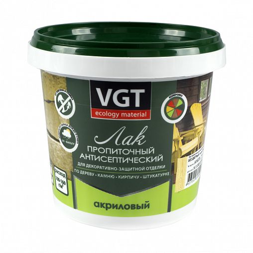 Лак ВГТ акриловый пропиточный с антисептиком бесцветный 0,9кг 15064/ 32694