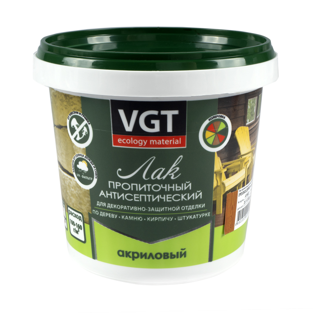 Лак ВГТ акриловый пропиточный с антисептиком ореховое дерево 0,9кг 15070