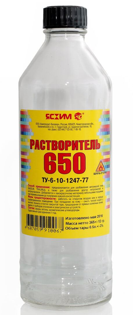 Растворитель 650 предназначен для лакокрасочной и других отраслей промышленности для разбавления эмалей для легковых автомобилей.