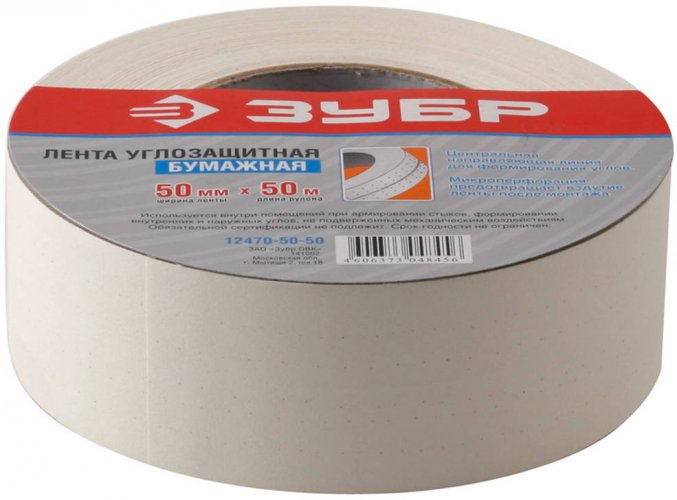 Бумажная лента ЗУБР - надежный помощник при ремонте! Наличие центральной направляющей линии обеспечивает легкое и удобное применение, а нанесенная микроперфорация предотвращает вздутие ленты после монтажа