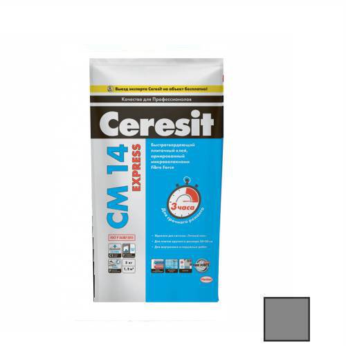 Быстротвердеющий цементный клей CM 14 Express предназначен для срочного выполнения работ по креплению всех видов керамических плиток, керамогранита, плиток из искусственного (на цементной основе) и природного (кроме мрамора) камня размером до 50х50 см — на стенах и полах внутри (включая влажные помещения и стяжки с подогревом) и снаружи зданий на недеформирующихся бетонных и цементных основаниях, в том числе с изготовленными на них гидроизоляционными покрытиями из материалов CR 65, CR 166 и CL 51.