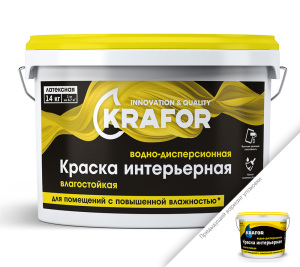 Краска интерьерная латексная влагостойкая 3кг KRAFOR (желт.) 26965
