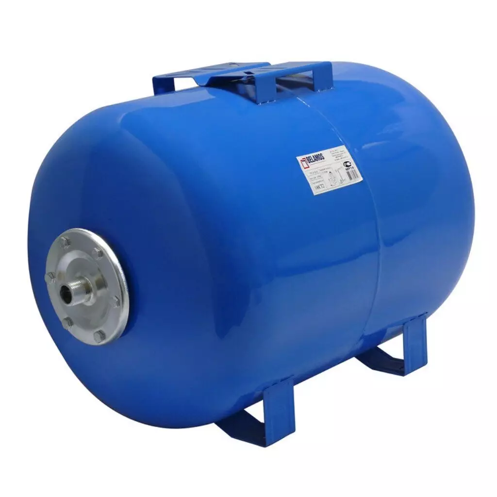 Гидроаккумулятор 100 CT горизонтального исполнения. Используется для поддержания оптимального давления воды в системах водоснабжения, предотвращения гидравлических ударов, ограничения количества включений насоса и создания некоторого запаса воды. Бак гидроаккумулятора выполнен из стали толщиной 0,8-1,2 мм (зависит от размера бака). Внешняя поверхность стального бака окрашена порошковой краской, что препятствует ржавчине. Бак изнутри покрыт бутиловой резиной.