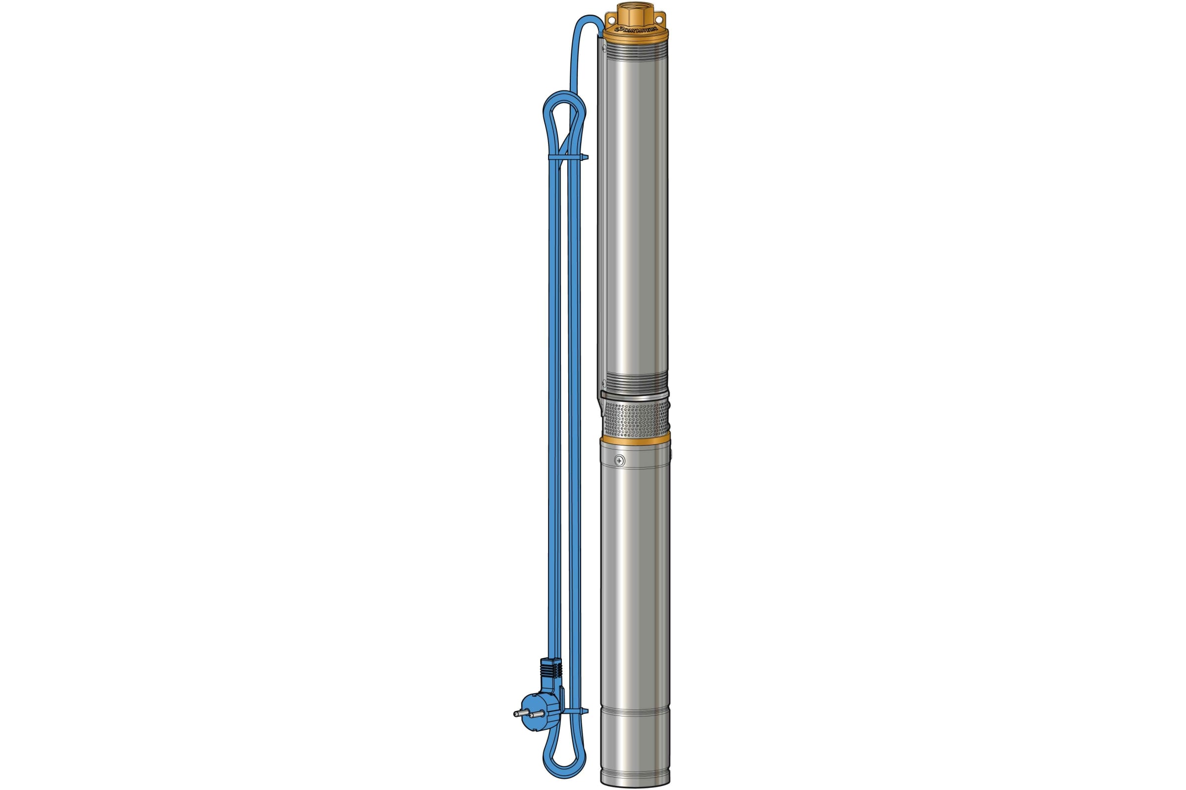 Предусмотрена возможность закрепить трос в проушинах для облегчения погружения насоса в скважину.