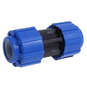 Муфта компрессионная соединительная. Предназначена для обеспечения надежного соединения двух полиэтиленовых труб равного диаметра между собой, при строительстве систем питьевого или технического водопровода, систем напорной или безнапорной канализации, для устройства кабельных каналов из ПНД труб с рабочим давлением до 16 атмосфер.