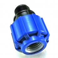 Муфта компрессионная с внутренней трубной резьбой. Предназначена, для возможности легкого перехода со стального трубопровода на трубопровод из ПНД труб, так как имеет резьбу соответствующую размерам и стандартам стальных трубных резьб. Кроме этого муфта компрессионная с внутренней резьбой может учувствовать в строительстве различных комбинаций отводов и разветвлений с применением других компрессионных ПНД фитингов.