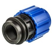 Муфта компрессионная с внутренней трубной резьбой. Предназначена, для возможности легкого перехода со стального трубопровода на трубопровод из ПНД труб, так как имеет резьбу соответствующую размерам и стандартам стальных трубных резьб. Кроме этого муфта компрессионная с внутренней резьбой может учувствовать в строительстве различных комбинаций отводов и разветвлений с применением других компрессионных ПНД фитингов.