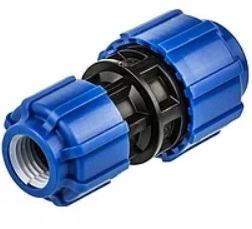 Муфта компрессионная соединительная переходная. Предназначена для перехода с трубы одного (большего) диаметра на трубу другого (меньшего) диаметра, в трубопроводных системах питьевого или технического водоснабжения с применением полиэтиленовых ПНД труб при строительстве систем полива на частных приусадебных хозяйствах, систем орошения городских газонов, или в сельском хозяйстве. При строительстве фонтанов, бассейнов, где нет необходимости использовать фитинги с повышенным запасом прочности, т.к. благодаря использованию облегченных материалов муфта компрессионная переходная имеет сниженную стоимость и может работать в трубопроводах с максимальным рабочим давлением до 16 атмосфер (PN16)