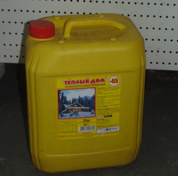 Концентрированый теплоноситель "Теплый Дом-65" производится с применением комбинированного пакета антикоррозионных, противонакипных и противопенных присадок и предназначен для получения теплоносителей отопления - водных растворов с меньшей температурой кристаллизации (замерзания).