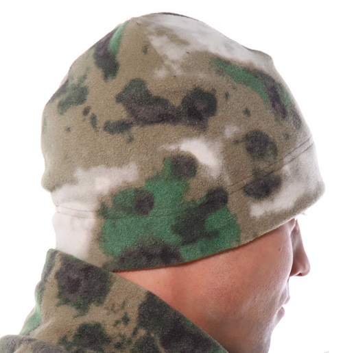 Шапка сделана из флисовой ткани – синтетического трикотажного полотна, в составе которого только полиэстер. Она весит менее 100 гр, практически не занимает места в багаже. Ее удобно носить в кармане. Шапка не имеет отворота и грубых швов, поэтому ее можно использовать в качестве подшлемника. Головной убор имеет вид купола. Его верхняя часть – однослойная, она составлена из клиновидных элементов. Нижняя часть шапки, подверженная растяжению, - двухслойная. В этой части она более упругая и плотная, потому что сделана из цельного куска материала. И именно поэтому у головного убора отсутствует склонность к вытягиванию и деформации.
