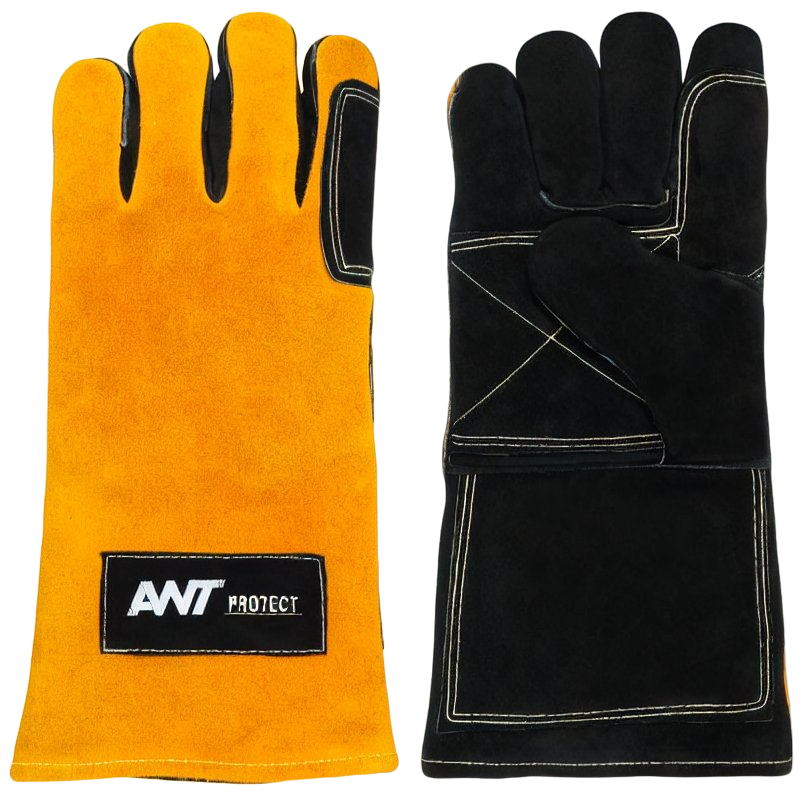 Краги сварщика спилковые AWT Protect нить Kevlar, доп усиление предназначены для сварочных работ. Они обладают уникальными характеристиками, которые обеспечивают максимальную защиту и комфорт во время работы. Материал краг — спилок, который является прочным и долговечным. Спилок обладает высокой степенью защиты от искр и брызг расплавленного металла, что делает эти краги незаменимыми для сварочных работ. Особенностью этих краг является способ фиксации — свободный край. Это означает, что краги легко надеваются и снимаются без необходимости использования дополнительных элементов фиксации. Эти краги имеют тип пятипалых, что позволяет сварщику легко и удобно выполнять свою работу. Они обеспечивают полный контроль над инструментами и предоставляют свободу движений, не ограничивая работника. Так же швы усилены кожаными вставками и прошиты огнеупорной нитью KEVLAR.