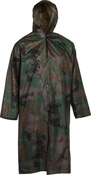 Камуфлированный плащ-дождевик защитит от непогоды, а также замаскирует вас на охоте, он компактен и имеет высокую износостойкость. Легко складывается и хранится в небольшом чехле с молнией. В таком виде он занимает мало места и легко вмещается в рюкзак или сумку