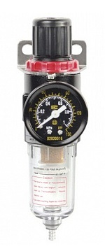 Регулятор давления с фильтром комплектуется манометром, с помощью которого можно настроить необходимое давление.