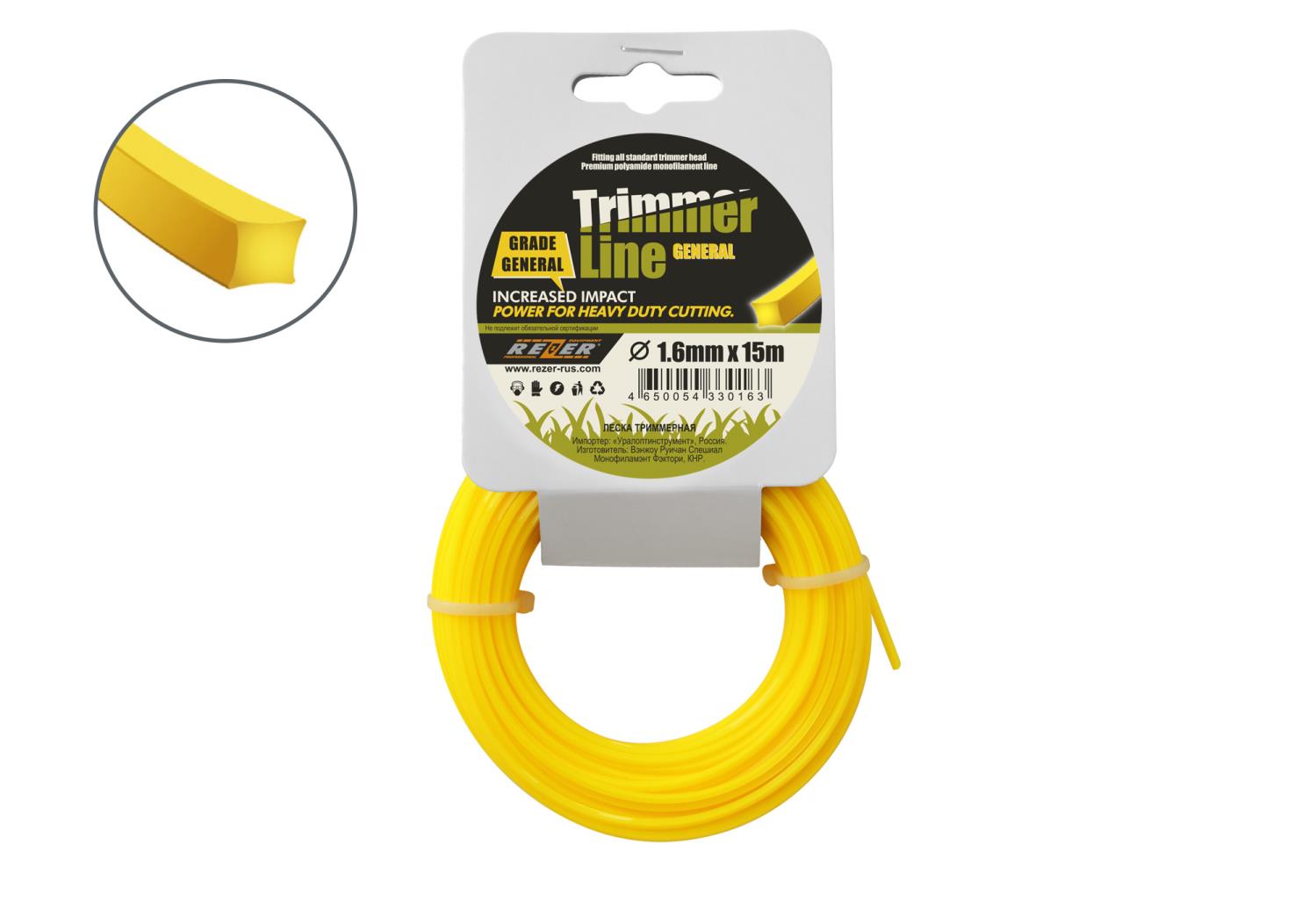 Леска триммерная 1,6*15м квадрат Rezer GENERAL 03.007.00029