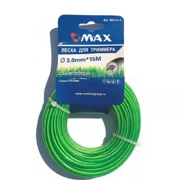 Леска для триммера MAXTOOL высокой прочности. Предназначена для любых видов триммеров с максимально допустимым диаметром лески до 3,0 мм. Материал лески - нейлон. Форма сечения - железный трос. Намотка 15 м.