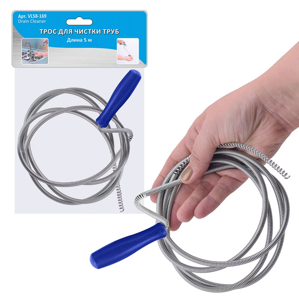 Никто не застрахован от засоров в раковине или в ванне, поэтому у каждого в доме должен быть трос для чистки труб. Когда химические средства бессильны, трос поможет справиться с проблемой. За счет гибкости и упругости тросик преодолевает повороты и соединения канализационной системы, удаляя образовавшийся засор. Наконечник растянут для лучшей очистки стенок труб, а ручка из пластмассы сделает вращение троса удобным. Изделие рассчитано на многоразовое использование, его можно хранить в свернутом виде, так он занимает мало места. Длина 5 м, диаметр 5 мм. Изготовлен из стальной пружины, ручка из пластмассы (полипропилен).
