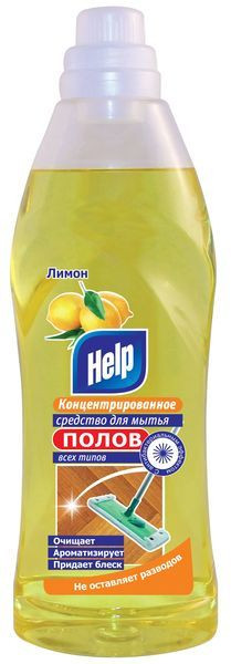 Концентрированное средство Help "Лимон" легко и быстро моет ламинат, кафель, линолеум, дерево. Прекрасно удаляет загрязнения, придаёт блеск полу и оставляет после себя приятный свежий аромат. Средство экономично и не оставляет разводов.
