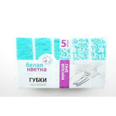 Губки кухонные БЕЛАЯ КВЕТКА "Морской бриз" 5шт., в РР (100х70х35)мм, с фиброполимером