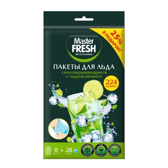 Пакеты для льда Master Fresh самозакрывающиеся с гидроклапаном предназначены для приготовления льда в морозильных и холодильных камерах. Они полностью герметичны и не пропускают жидкость и посторонние ароматы. Используются для охлаждения напитков, для фруктового льда, для косметических процедур и холодных компрессов. Быстрое и легкое извлечение шариков – просто надавите на серединку.