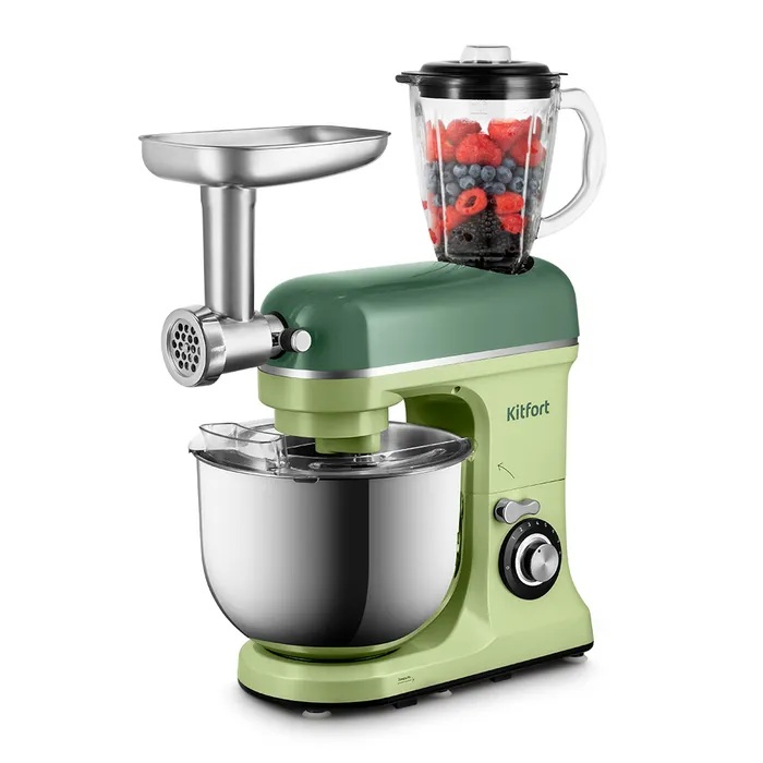Идеально подходит для смешивания фруктовых и фитнес-напитков, приготовления смузи, протеиновых смесей, молочных коктейлей, супов-пюре, соусов и детского питания. В комплекте с блендером идёт вместительная чаша с мерной шкалой ёмкостью 1,5 литра. Разборная конструкция блендера В крышке блендера есть отверстие, закрываемое колпачком, для добавления ингредиентов непосредственно во время работы. Чаша блендера выполнена из стекла. Все детали блендера также разбираются, а разъём для установки блендера закрывается крышкой. Вес брутто 10,8 кг Мощность 1600 Вт Количество скоростей 8 Ёмкость чаши миксера 8 л Материал чаши нержавеющая сталь Ёмкость чаши блендера 1,5 л Уровень шума <78 дБ Длина шнура 1 м Размер устройства 478 х 267 х 600 мм Размер упаковки 603 х 283 х 516 мм Вес нетто 9,0 кг Вес брутто 10,8 кг