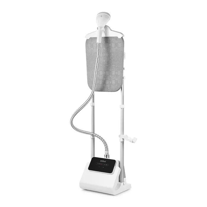 Вещи всегда в идеальном состоянии! Отпариватель Kitfort КТ-9122 позволяет быстро прогладить любые вещи и изделия из текстиля даже со сложной текстурой, которые обычно не гладят. Кроме глажки и отпаривания он обрабатывает вещи мощной струёй горячего пара, проводя чистку и дезинфекцию. Отпаривать максимально удобно! При отпаривании одежда может висеть на вешалке отпаривателя, обычной вешалке, подвешенной на сушилке для белья или на верёвке, или быть расположена на гладильной доске отпаривателя. Гладильная доска в комплекте Отпариватель оснащён гладильной доской, которая может быть расположена горизонтально, вертикально и под углом 30° или 60°. Она значительно облегчает и ускоряет процесс отпаривания. Также на ней располагается крючок, на который можно вешать вешалку. 6 уровней подачи пара Нажатием на кнопку переключения уровня подачи пара циклически переключаются 6 режимов: “Шёлк”, “Синтетика”, “Хлопок”, “Лён”, “Шерсть” и “Полушерсть”, где положение “Шёлка” - минимальная подача пара, а положение “Полушерсть” -