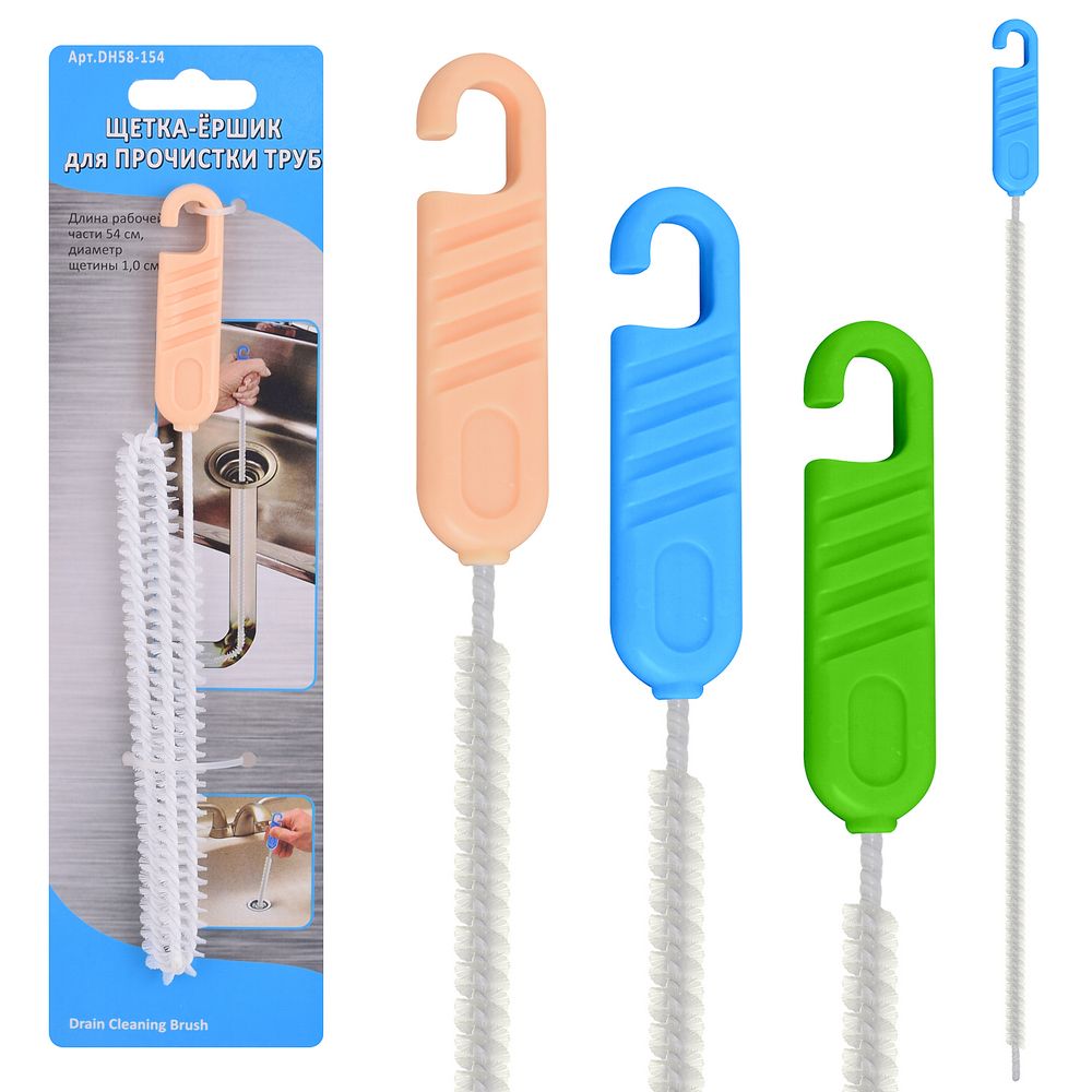 Щетка-ершик производится из пластмассы и металла, длина рабочей части 54 см, диаметр 1 см.