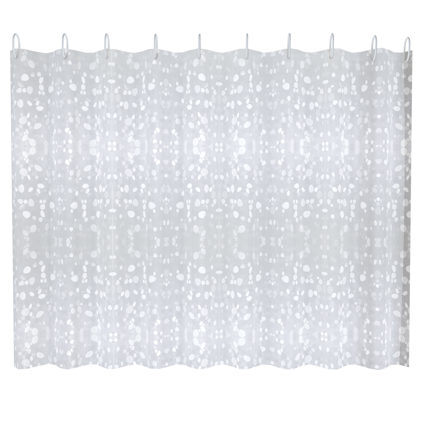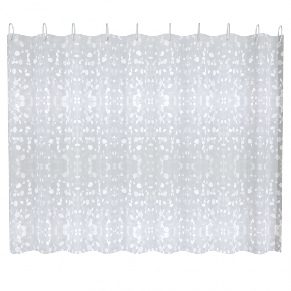 A8757 шторка для ванны с 3D эффектом и набором пластиковых колец для подвеса белая галька полиэтилен 180х200 см упаковка: плотный полиэтиленовый пакет с подвесом