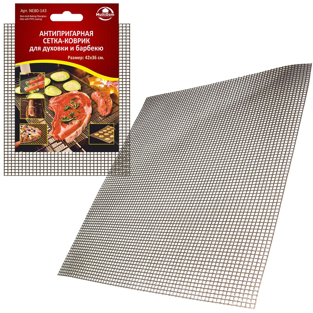 Антипригарный коврик — настоящая находка для хозяйки. Это приспособление защитит от пригорания поверхность решетки для барбекю или противня, позволит приготовить здоровую пищу без использования масла или жира. Сетка помогает воздуху циркулировать, что позволяет добиться хрустящей корочки во время запекания. Чтобы достать блюдо, слегка изогните сетку-коврик и выньте из духовки. Сетка рассчитана на многоразовое использование, практична и проста в уходе. Изделие легко моется водой с любым жидким моющим средством и мягкой губкой. Не впитывает запахи. Жаростойкость - до 260°С Изготовлена из тефлона, армированного стекловолокном. Выполнена в форме сетки. Размер 42х36 см. ВНИМАНИЕ: Не режьте выпечку ножом на коврике. Не используйте абразивные материалы и жесткие щетки.