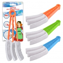 Чистка жалюзи — сложное занятие, требующее времени и усилий. Специальная щетка для чистки жалюзи подходит для влажной очистки горизонтальных планок. Приспособление очищает сразу три секции, помогает быстро и без лишних усилий справиться с пылью, даже если она расположена очень высоко. Волокна микрофибры имеют антистатический эффект, притягивают пыль как магнит и удерживают ее внутри. Рабочая часть съемная, поэтому быстро и легко стирается в воде и можно пользоваться снова. Подходит также для очистки мебели и бытовой техники. Изготовлена: корпус из прочного пластика (полипропилен), насадка из микрофибры (80% полиэстер + 20% полиамид).