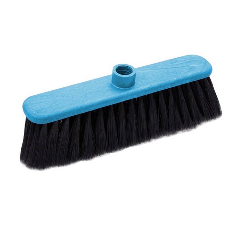 Щетка для пола Svip Арианна классической формы предназначена для подметания гладких поверхностей: паркета, ламината, плитки, линолеума и др. Корпус изготовлен из пластика. Ворс щетки распушеван, благодаря чему еще более эффективно притягивается пыль и мусор. Щетина изготовлена из полиэтилентерефталата. Количество рядов щетины: 6. Резьбовое крепление к ручке изготовлено из полипропилена. Щетка поставляется без рукоятки.Соответствует требованиям ХАССП.Размер основания: 30x7 см.