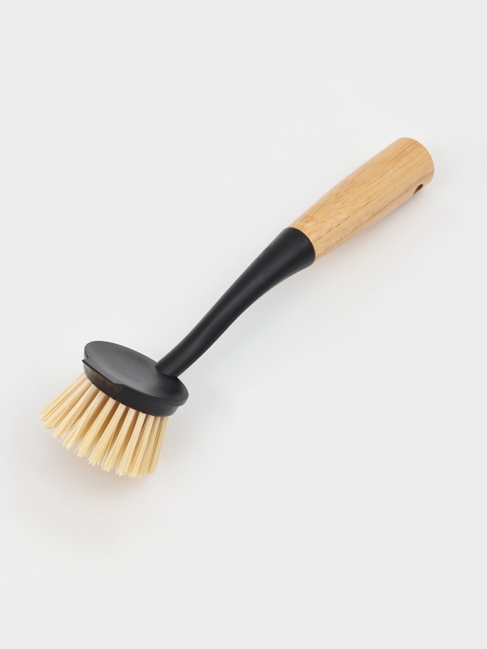 Щетина из синтетического полипропилена обладает необходимой жёсткостью для удаления остатков пищи, но не царапает поверхности.