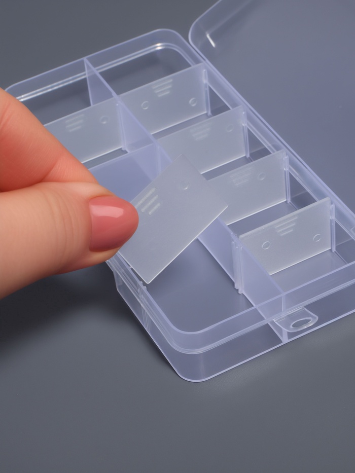 Прозрачный пластик — сразу видно, что внутри, и легко найти нужную мелочь.