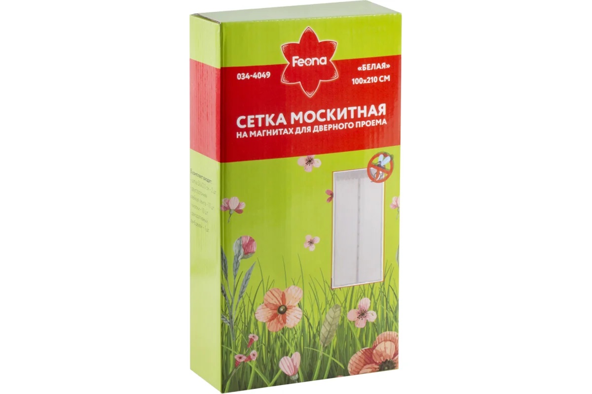 Москитная сетка на магнитах FEONA 1x2.1 м, белая 034-4049 224823 - это практичное и удобное решение по защите дома от различных насекомых. Изделие также останавливает тополиный пух и крупный мусор при сильном ветре, позволяя без затруднений вентилировать помещение. Сетка предназначена как для оконных, так и для дверных проемов.