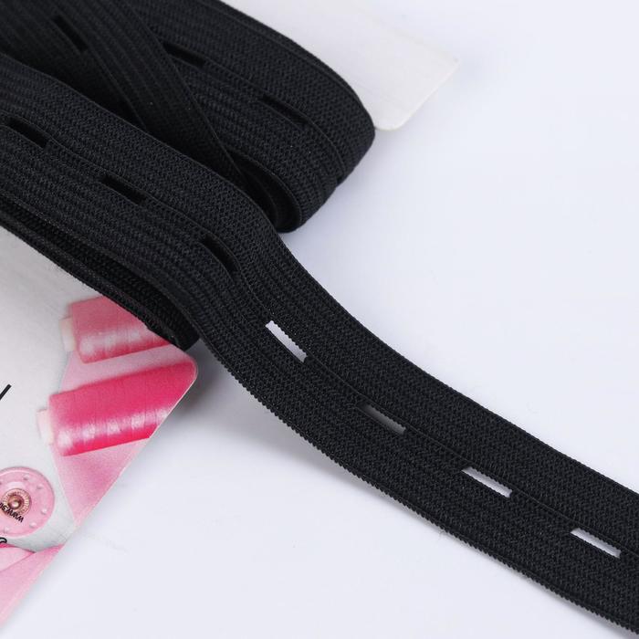 Резинка вязаная, перфорированная, 20 мм, 2,4 ± 0,5 м, цвет чёрный