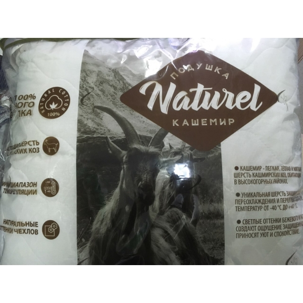 Чехол подушки Кашемир коллекции «Naturеl» изготовлен из простеганного полотна, верхний слой которого - 100% хлопок, а подстёжка - шерсть кашмирских коз. Наполнитель подушки – современное высокотехнологичное волокно.