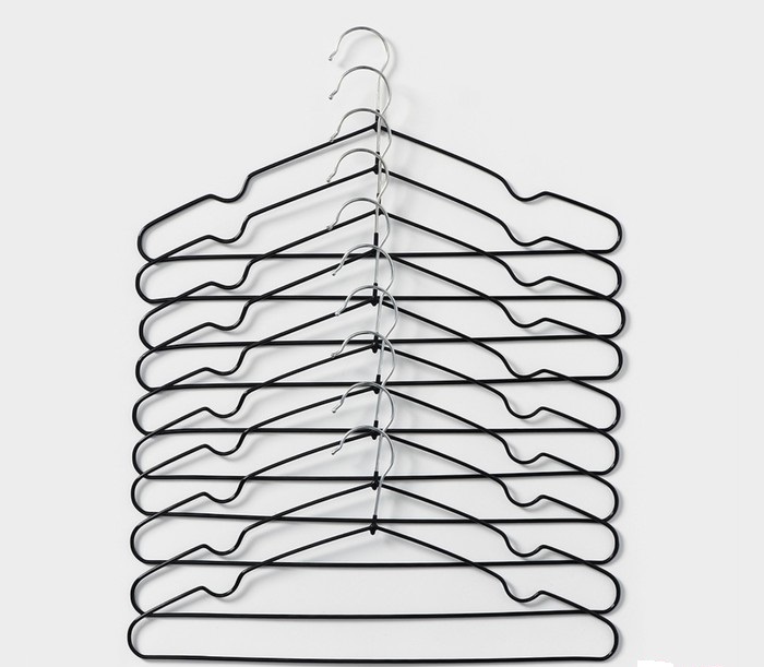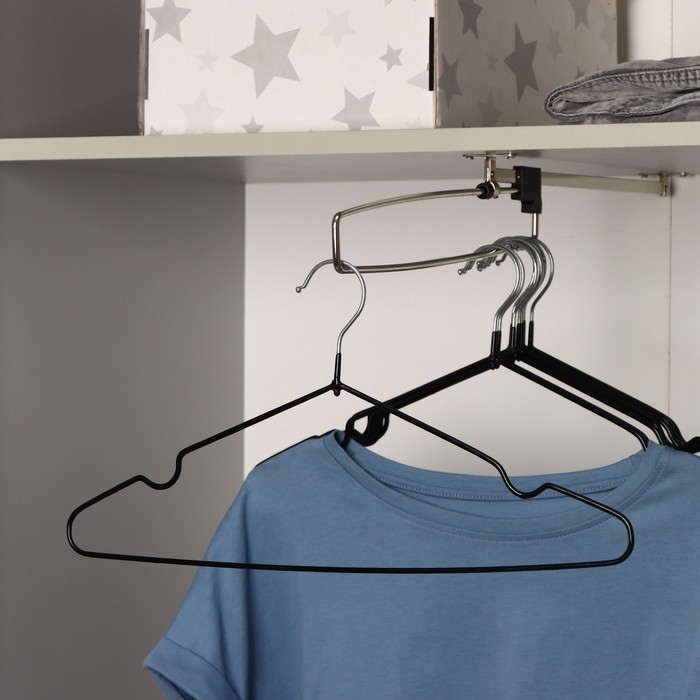 Вешалка-плечики с антискользящим ПВХ покрытием – незаменимая вещь в каждом шкафу. Специальное покрытие вешалки не даёт одежде соскальзывать. Классическая форма с перекладиной для брюк и выемкой для одежды с бретельками позволяет использовать вешалку практически для любой одежды. Тонкие металлические плечики не займут много места в вашем шкафу и помогут разместить всю одежду.