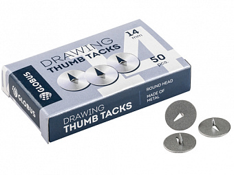 Металлические канцелярские кнопки, без покрытия. Размер кнопки 14 мм, тип ножки треугольный. В картонной упаковке 50 шт.