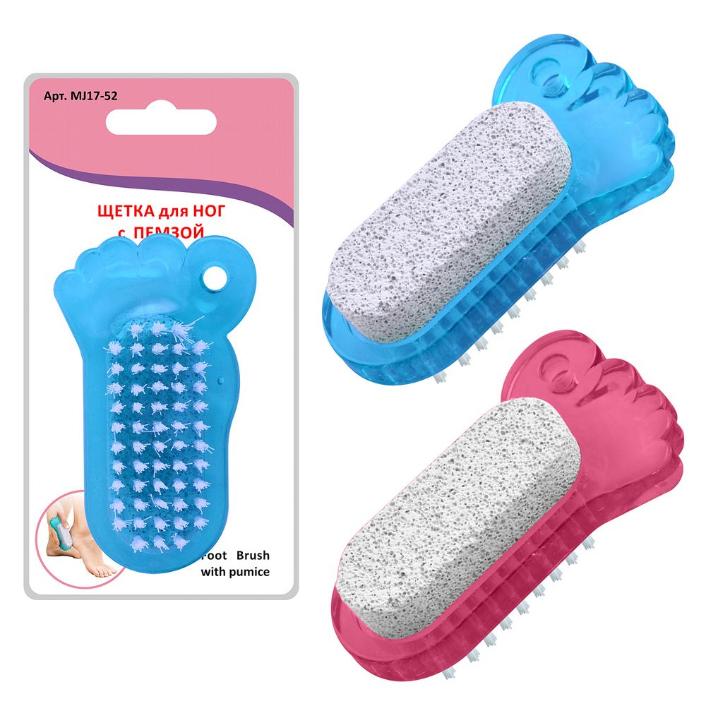 Щетка для ног с пемзой — полезное приспособление для поддержания ног в ухоженном виде. Пемза предназначена для шлифования огрубевшей кожи стоп и пяток, эффективно, но бережно удаляет ороговевшие частички. Щеточка используется для удаления пыли и грязи во время проведения педикюра и маникюра, а также для очистки загрязнений на коже и под ногтями. Мягкие щетинки хорошо справляются с загрязнениями, при этом не царапают кожу. Используйте изделие только для мытья ног, ступней и рук. Не рекомендуется маленьким детям, а также людям с кожными заболеваниями. Изготовлена: корпус из пластмассы, рабочая часть из синтетической щетины и искусственной пемзы.
