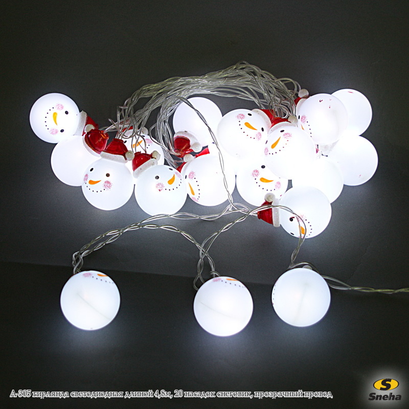 Гирлянда светод. А-305 4,8м 20 насадок Снеговик