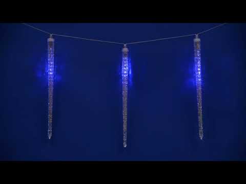Занавес светодиодный фигурный ULD-E3005-300/DTK Сосульки, соединяемый. 10 подвесов. 300 светодиодов. Размер 3х0,5м. Цвет свечения синий. IP44. Провод прозрачный