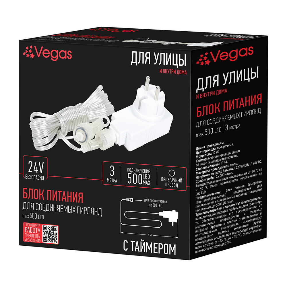 Блок питания с таймером VEGAS 24V 12W 220V/24V 55129