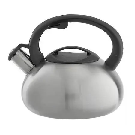 Чайник нерж 2,5л свист,цельнолитое инд.дно,бакел.черн.ручка с кнопк.д/открыван,матов,п/у