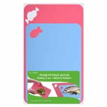 Для каждого типа продуктов рекомендуется использовать свою доску, это исключит перемешивание готовых и сырых продуктов, а также смешивание запахов. Разделочные доски для мяса и рыбы будут кстати на любой кухне. Специально разработанный дизайн поможет вам не перепутать доски перед тем, как начать нарезку — на каждом изделии есть оригинальное отверстие-изображение. Отверстие позволяет хранить доски на крючках. Гибкий материал позволяет аккуратно ссыпать нарезанные продукты в емкости с салатом, кастрюли и сковородки. После использования тщательно вымойте губкой с моющим средством. Изготовлено из пластмассы (полипропилен). Размер: 34,5х25 см, 28х20,5 см.