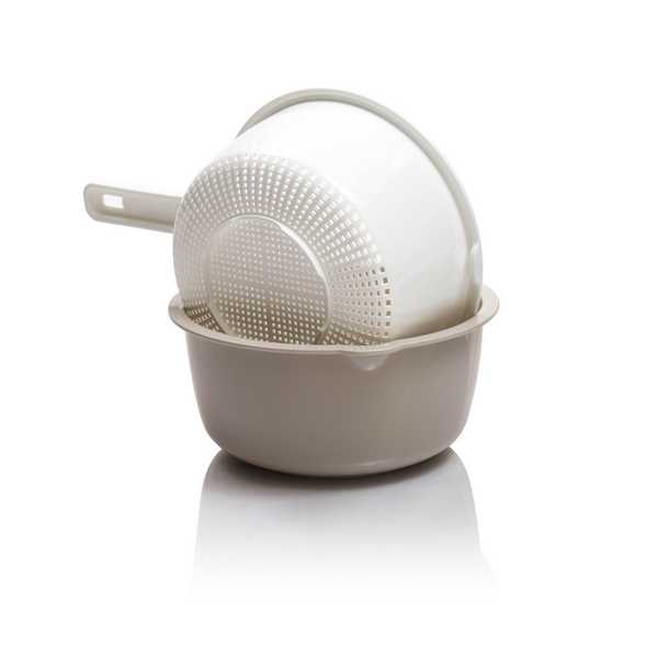 Двойной дуршлаг из качественной пластмассы просто незаменим у хорошей хозяйки. Откинуть макароны, промыть ягоды и фрукты, промыть приготовленный рис очень просто, если у вас пластмассовый дуршлаг.