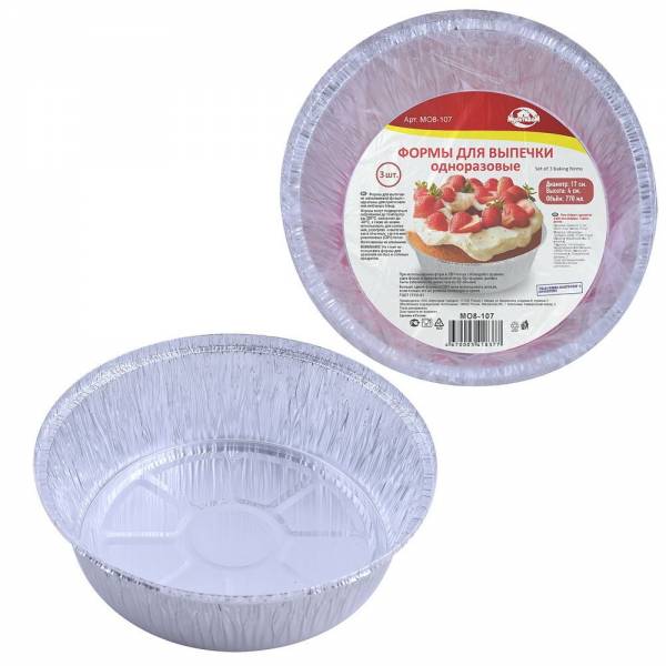 Формы для выпечки из алюминиевой фольги - идеальны для приготовления любимых блюд, таких как хлебобулочные изделия, запеканки, бисквиты, омлеты, паштеты, рулеты, заливное и многое другое. Достаточно выбрать форму нужного Вам размера и понравившийся рецепт. Формы из алюминия имеют большую теплопроводность, равномерно нагреваются, исключая места перегрева и холодные края - это позволяет значительно быстрее приготовить блюдо. В них можно выпекать, разогревать и замораживать продукты. Формы могут подвергаться нагреванию до температуры 280°С, заморозке до -40°С, а также их можно использовать для запекания, разогрева и выпечки как в обычных, так и в микроволновых (СВЧ) печах. Использование форм позволяет добиться наилучших результатов при приготовлении различных блюд, получить привлекательный вид готового блюда, сохранить все вкусовые характеристики используемых продуктов. Пищу, приготовленную в формах очень удобно взять с собой на пикник или на дачу.