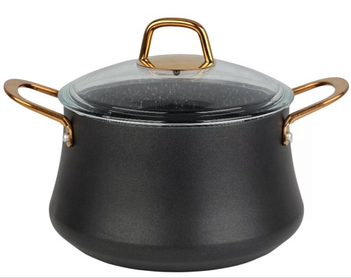 Литая под высоким давлением стеклянная крышка с золотой ручкой из нержавеющей стали.