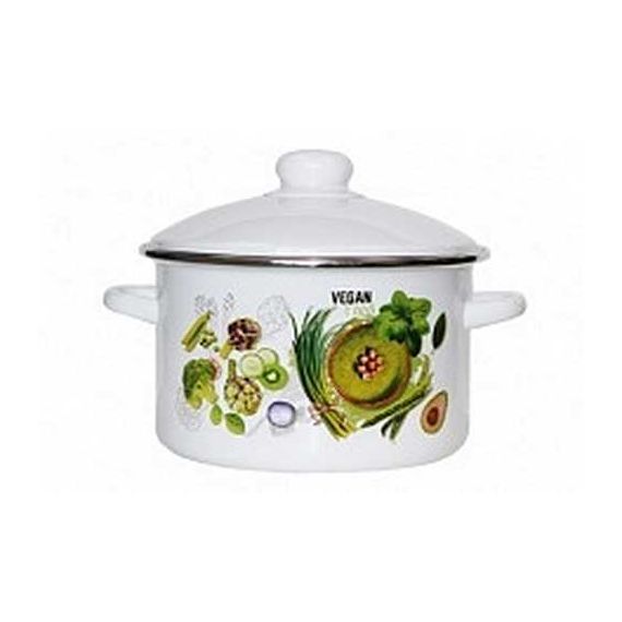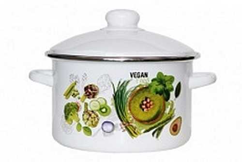 Кастрюля 2,0л Веган имеет объём и размер: 2.0 л. Выполнен из материала: эмалированная сталь. Упаковка: коллективная. Кастрюля 2,0л Веган можно использовать на «Все виды плит».